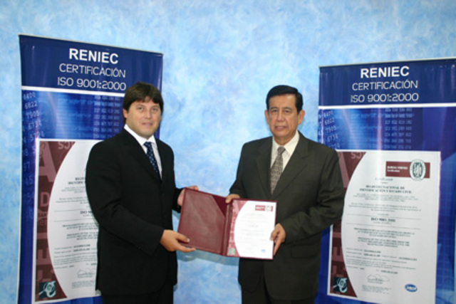 El Registro Nacional de Identificación y Estado Civil (RENIEC) recibió de la empresa certificadora internacional Bureau Veritas la Certificación ISO 9001: 2000 para la línea de procesamiento de Registros Civiles (partidas de nacimiento, matrimonio y defunción) convirtiéndose en la primera en la región con esta acreditación reconocida mundialmente.